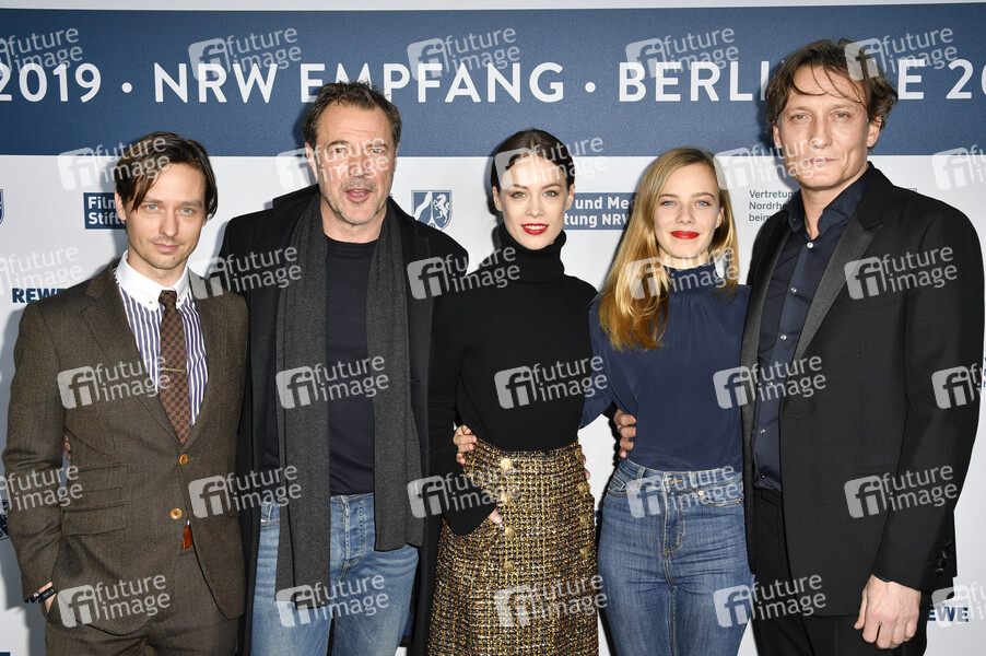 Tom Schilling, Sebastian Koch, Paula Beer, Saskia Rosendahl und Oliver Masucci beim NRW Empfang während der Berlinale 2019 in der Vertretung des Landes Nordrhein-Westfalen. Berlin, 10.02.2019