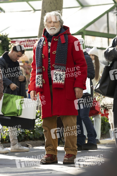 Arnold Schwarzenegger als Weihnachtsmann bei den Dreharbeiten zum Amazon MGM Studios Film 'The Man with the Bag' im Bryant Park. New York, 18.12.2024