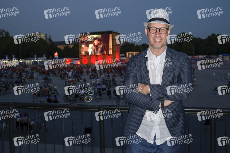 Michael Otremba, Geschäftsführer der Hamburg Marketing GmbH, beim 1. Hamburger Fahrradkino auf dem Heiligengeistfeld. Hamburg, 07.08.2020