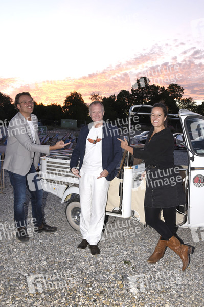 Christoph Gröner, Ulrich Thomsen und Julia Weigl bei der Premiere des Kinofilms 'Gutterbee' beim Filmfest München Pop-Up im PopUp Autokino auf dem Zenith Parkplatz. München, 26.08.2020