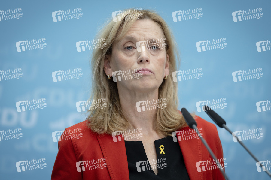Karin Prien bei der Pressekonferenz der CDU im Anschluss an die Gremiensitzungen im Konrad-Adenauer-Haus. Berlin, 06.10.2025