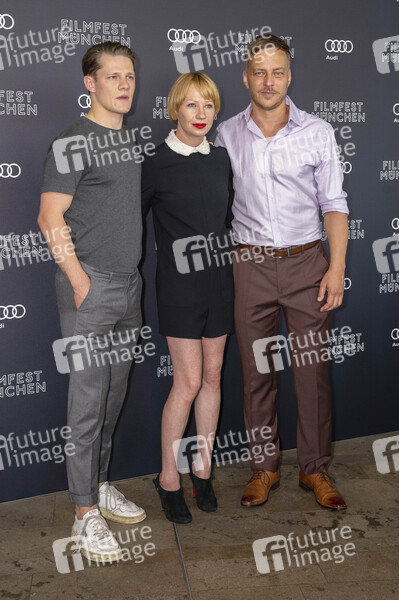 Max von der Groeben, Birgit Minichmayr und Tom Wlaschiha bei der Premiere der ARD-Serie 'Das Netz - Ein Wintermärchen' auf dem 39. Filmfest München 2022 im HFF Audimax. München, 29.06.2022