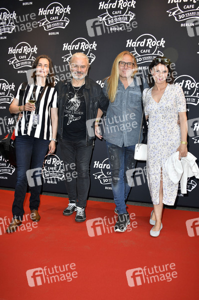 Hans-Jürgen Reznicek mit Begleitung und Uwe Hassbecker mit Partnerin Uta Siegel bei der Geburtstagsfeier 30 Jahre Hard Rock Cafe Berlin im Hard Rock Cafe. Berlin, 18.05.2022