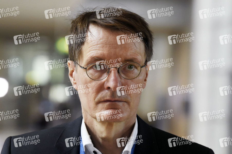 Karl Lauterbach bei einem Pressestatement am Rande der 222. Sitzung des Deutschen Bundestages im Reichstagsgebäude. Berlin, 16.04.2021