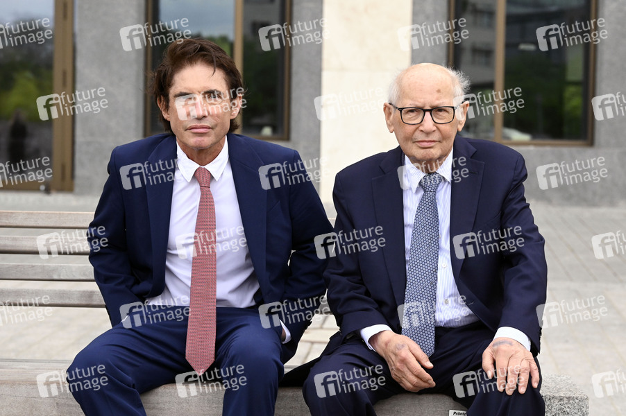 Arno Klarsfeld und Serge Klarsfeld bei der Kranzniederlegung am Denkmal für die ermordeten Juden Europas. Berlin, 27.05.2024