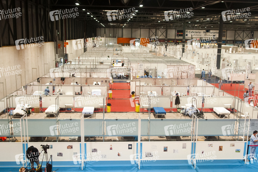 Hospital Covid-19 IFEMA, Dia Internacional del Libro, UNESCO Welttag des Buches und des Urheberrechts, Kultur, Lesung, Buch, Literatur, Krankenhaus, Hospital, Feldkrankenhaus, Medizin, Coronakrise, Corona-Krise, Kontaktverbot, Abstandsregel, Versammlungsverbot, Seuchenschutz, Quarantäne, Quarantänemaßnahme, Ausgangssperre, Mindestabstand, Social Distancing, Kontakt verboten, Ausgangsbeschränkung, Coronaviren, Virus, Viren, Corona, Covid-19, Sars-CoV-2, Coronavirus, Coronaviren, Corona-Virus, Corona-Viren, Ansteckungsgefahr, Epidemie, Pandemie, Infektion, Infektionen, Corona-Angst, Ansteckungsangst, Seuche, anstecken, Krankheit, Vorbeugung, Prävention, schützen, Schutz, Ausnahmezustand, Risiko, Risikobewertungen, Maßnahmen, Coronamaßnahmen, Corona-Infektion, Corona-Infektionen, Corona-Schutz