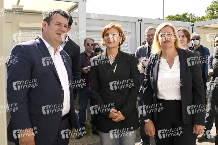 Hubertus Heil, Katja Kipping und Nancy Faeser beim Besuch der Gemeinschaftsunterkunft für Geflüchtete in Berlin-Spandau. Berlin, 14.06.2022