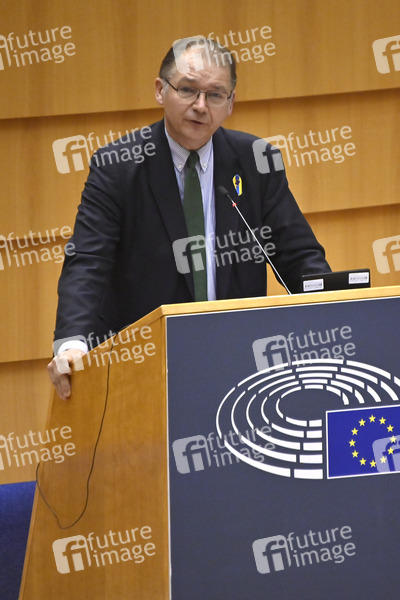 Rede, außerordentliche Sitzung, Sondersitzung, Politik, Europaparlament, EU-Parlament, EP, Parlament der Europäischen Union, Parlamentum Europaeum, MdEP, Mitglied des Europäischen Parlaments, Krieg, Angriffskrieg, Einmarsch, Europapolitik, internationale Krise, internationale Politik, internationales Recht, Konflikt, Krieg, Kriegsbeginn, Kriegsverbrechen, Krise, Militäroffensive, Militärschlag, Sanktionen, Solidarität, Solidaritätsbekundung, Ukraine, Ukrainekonflikt, Ukraine-Konflikt, Ukrainekrise, Ukraine-Russland-Krise, Politiker, Belgien, Ecolo, Co-Vorsitzender der Fraktion Die Grünen/EFA