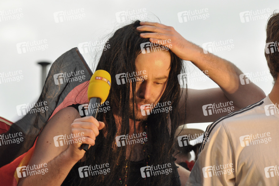 Uwu Lena präsentieren ihren FIFA Fußball-Weltmeisterschaft Hit "Schland O Schland", eine Coverversion des Eurovision Gewinnersongs "Satellite" von Lena, bei der RTL Roadshow in Köln