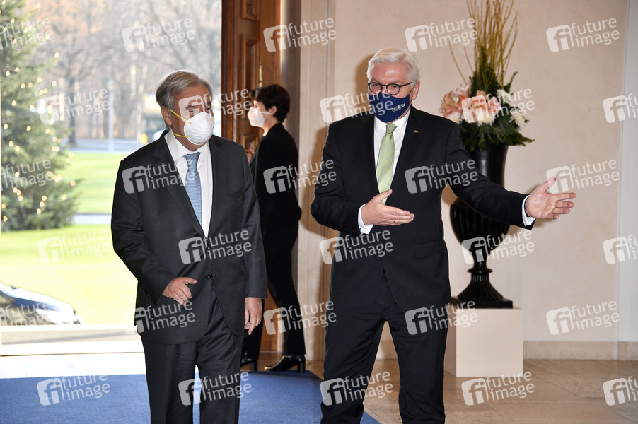 Antonio Guterres und Frank-Walter Steinmeier beim Empfang des Bundespräsidenten im Schloss Bellevue. Berlin, 18.12.2020
