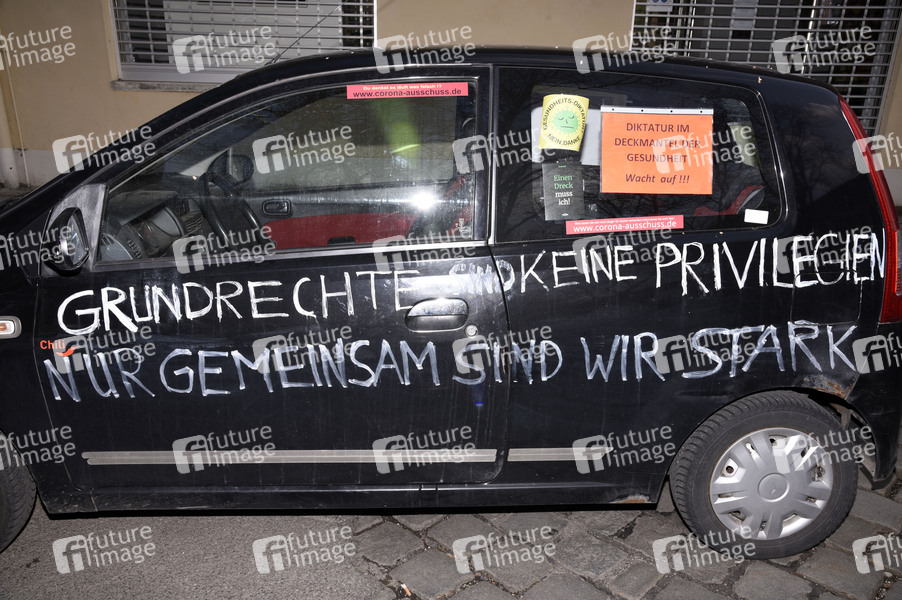 Protest, Demo, Demonstration, Corona-Maßnahmen-Kritiker, Corona-Hygieneregeln, Distanz, Mund-Nasen-Schutz, Protestierende, Demonstranten, Polizei, Polizisten, Querdenker, CoronaleugnerGegner der Corona-Maßnahmen, Infektionsschutzgesetz, Corona-Notbremse, Eindämmung der dritten Pandemiewelle, Teilnehmer, Corona-Regeln, Pandemien, Corona-Demo, Coronademo