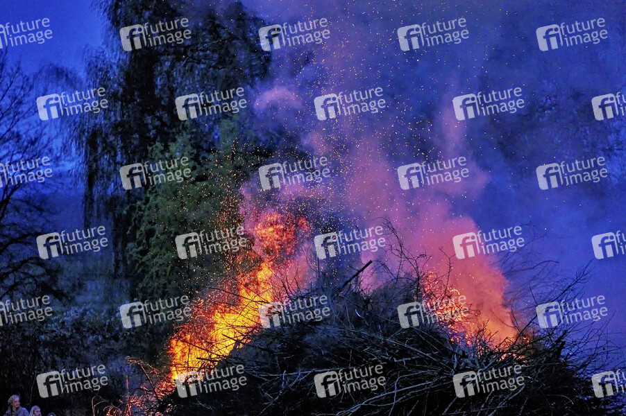 Ostern, Tradition, Feuer, Lagerfeuer, Weserbergland, Brauch, Feuerweihe, Ostersonntag, Osterbrauch, Holzstoß, Feuerwehr, Rauchentwicklung, Rauch, Qualm, Symbolbild, Themembild