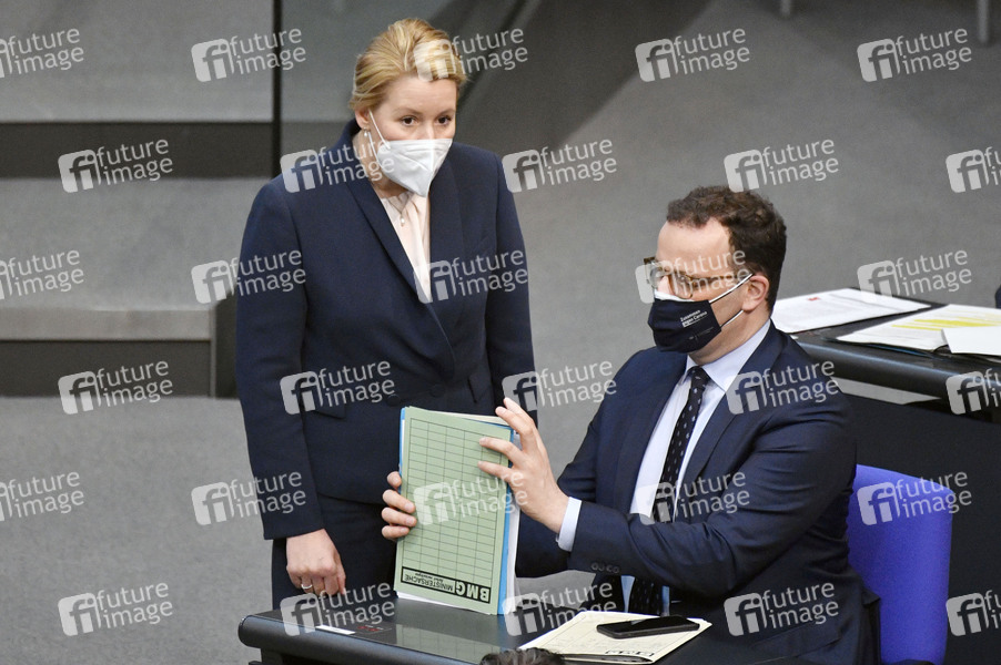 Franziska Giffey und Jens Spahn in der 227. Sitzung des Deutschen Bundestages im Reichstagsgebäude. Berlin, 06.05.2021