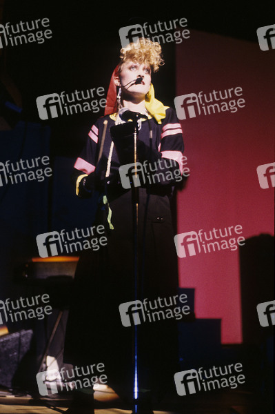 Alannah Currie von den Thompson Twins live im Hammersmith Odeon. London, 12.05.1984
