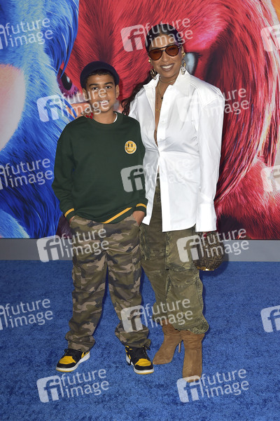 Melanie Fiona mit Sohn Cameron Lincoln Cotter und Melanie Fiona bei der Premiere des Kinofilms 'Sonic the Hedgehog 3' im TCL Chinese Theatre. Los Angeles, 16.12.2024
