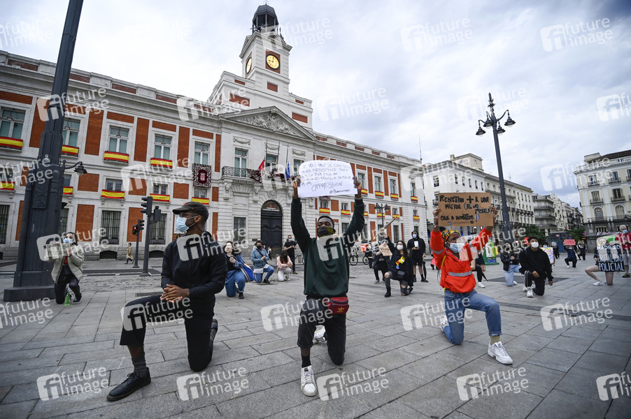 Demonstration zum Tod des Afroamerikaners George Floyd durch einen Polizisten am vergangenen Montag in Minneapolis auf dem Puerta del Sol. Madrid am 31.05.2020