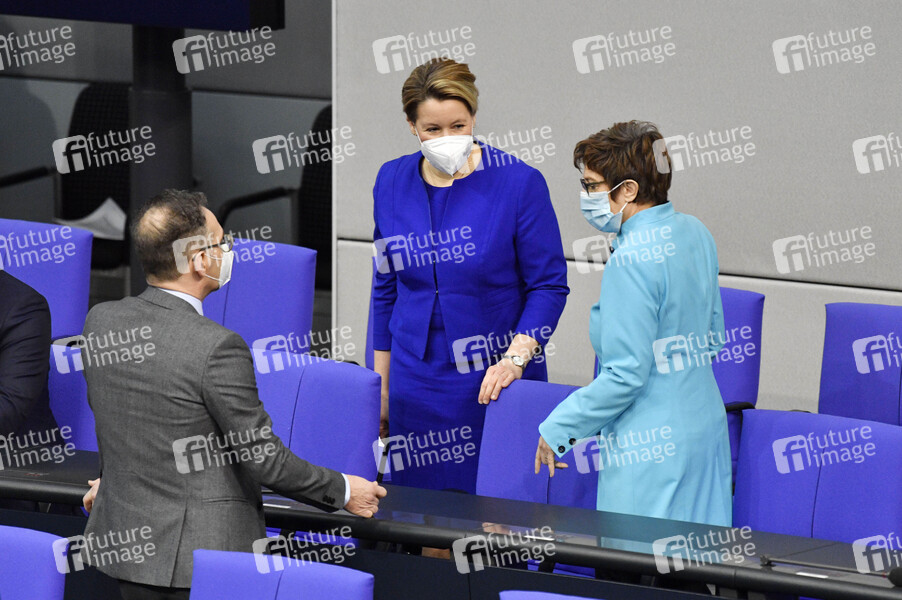 Heiko Maas, Franziska Giffey und Annegret Kramp-Karrenbauer in der 209. Sitzung des Deutschen Bundestages im Reichstagsgebäude. Berlin, 11.02.2021