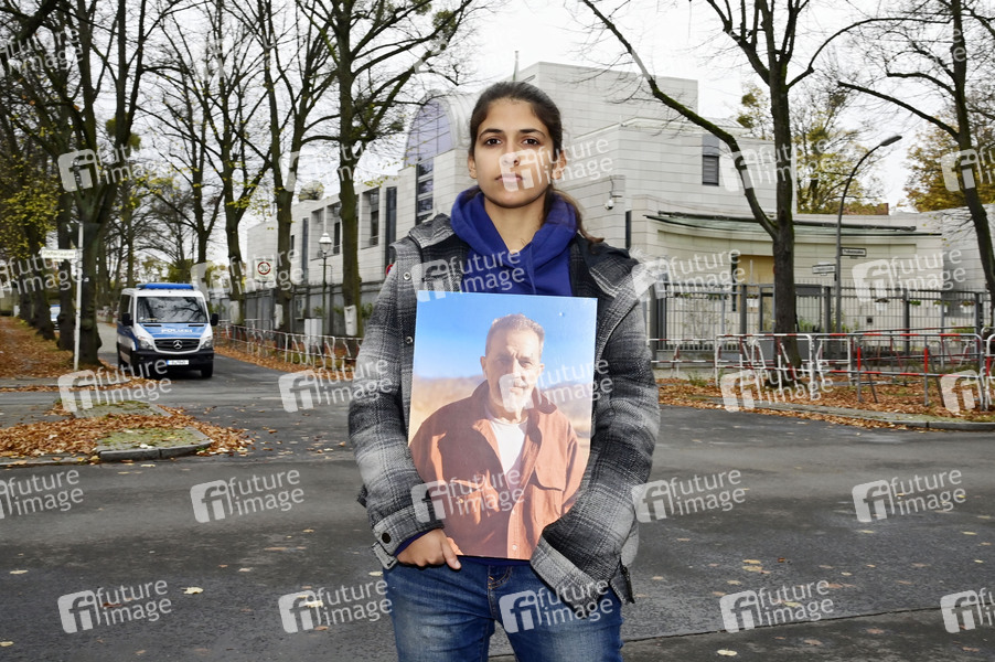 Daniela Sepehri einer Protestaktion vor der Botschaft der Islamischen Republik Iran nach der Hinrichtung des Deutsch-Iraners Jamshid Sharmahd. Berlin, 29.10.2024