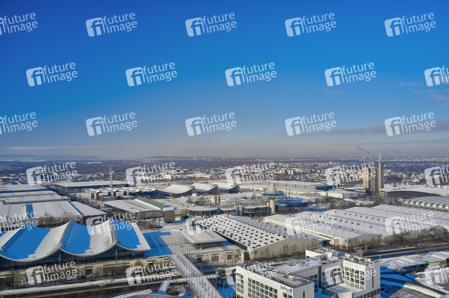 Luftbild vom EXPO 2000 Areal und dem Messegelände im Winter. Hannover, 11.02.2021