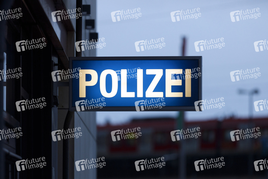 Ein Schild POLIZEI an einer Polizeiwache in Kalk. (Themenbild, Symbolbild) Köln, 26.02.2021