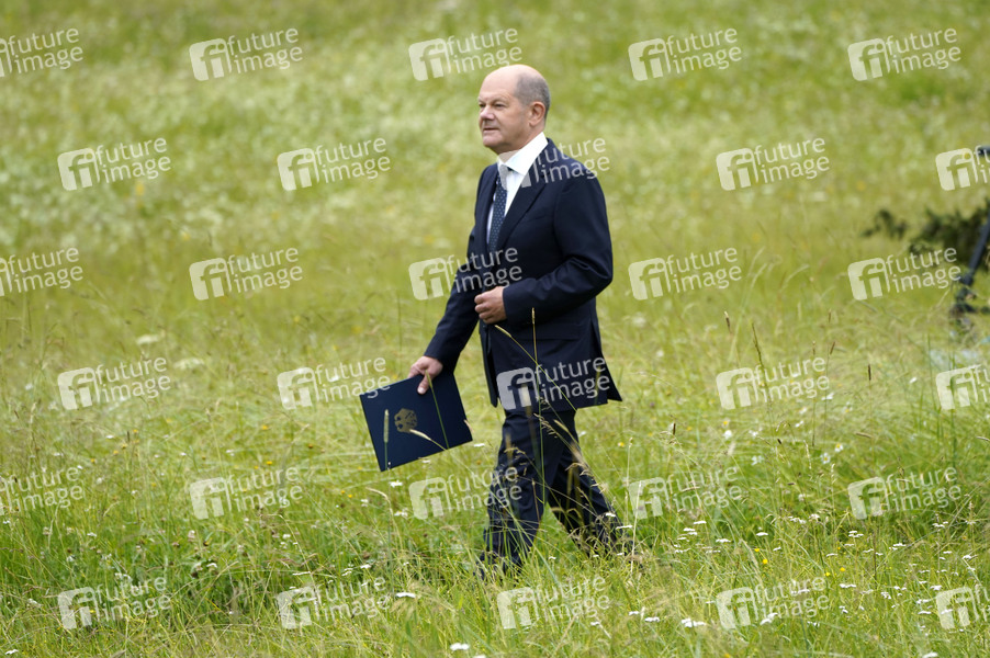Olaf Scholz bei der Abschlusspressekonferenz zum G7-Gipfel auf Schloss Elmau. Klais, 28.06..2022
