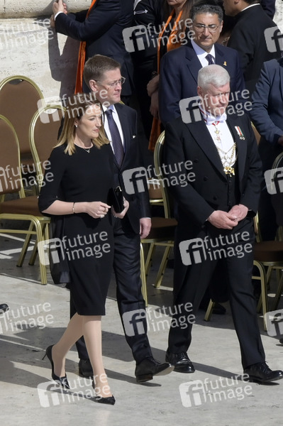 Roberta Metsola mit Ehemann Ukko Metsola bei der Amtseinführung von Papst Leo XIV. auf dem Petersplatz. Vatikanstadt, 18.05.2025