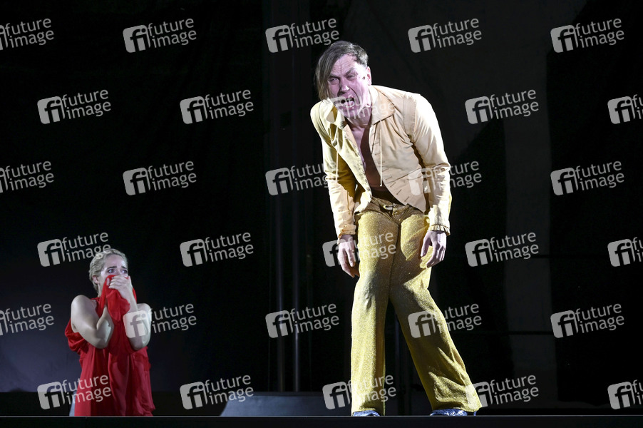 Verena Altenberger und Lars Eidinger bei der Fotoprobe von 'Jedermann - Das Spiel vom Sterben des reichen Mannes' im Rahmen der Salzburger Festspiele auf dem Domplatz. Salzburg, 16.07.2022