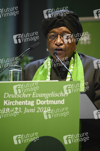 Politikerin, 2006-2018 die 24. Präsidentin von Liberia, Friedensnobelpreisträgerin, Rede, Vortrag, Panel, Kirche, Christen, Christentum, evangelisch, Gläubige, Religion, Politik, 37. Deutscher Evangelischer Kirchentag Dortmund 2019