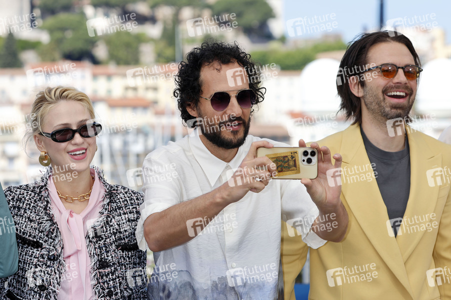 Maria Bakalova, Ali Abbasi und Sebastian Stan beim Photocall zum Kinofilm 'The Apprentice' auf dem Festival de Cannes 2024 / 77. Internationale Filmfestspiele von Cannes am Palais des Festivals. Cannes, 21.05.2024