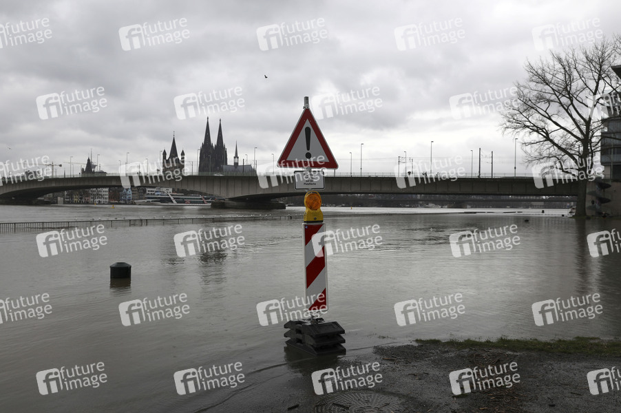 Reinhochwasser, Rheinpegel, Fluss, Rhein, Pegelstand, Pegel, Hochwasser, Pegelmarke, Hochwassermarke, Hochwasserwelle, Scheitelpunkt, Rhein-Pegel, Flussbett, Flut, Schifffahrt, Hochwasserschutz, Wasserstand, Mittelwasser, Tauwetter, Rheinschifffahrt, Rheinufer, Rhein-Ufer, Hochwasserschutzzentrale, Hochwasserwelle, Pegel-Nullpunkt, Hochwasserlage, Hochwassermeldedienst, Hochwasserinformationsdienst, Wasserstände, Pegelstände, Wetterlage, ansteigendes Wasser, steigender Pegel, unter Wasser, überflutet, Rheinufer, Schmelzwasser, Wetter, Scheitelpunkt, kritische Marke, Hochwassermarke, Kölner Dom, Deutz, Symbolbild, Symbolfoto