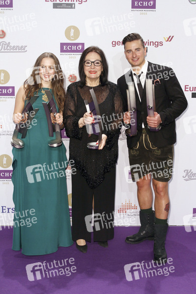 Oonagh, Nana Mouskouri und Andreas Gabalier bei der 24. Verleihung vom Musikpreis ECHO 2015 in der Messe Berlin im Palais am Funkturm. Berlin, 26.03.2015