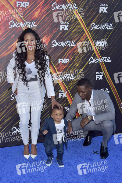 Damson Idris mit Partnerin und Sohn Seven John bei der Premiere der 3. Staffel der FX TV-Serie 'Snowfall' im Bovard Auditorium der USC. Los Angeles, 08.07.2019
