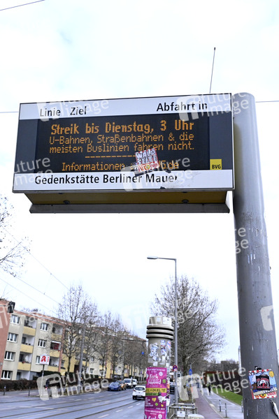 Information zum Warnstreik bei der BVG an einer Haltestelle an der Bernauer Straße. Berlin, 27.01.2025