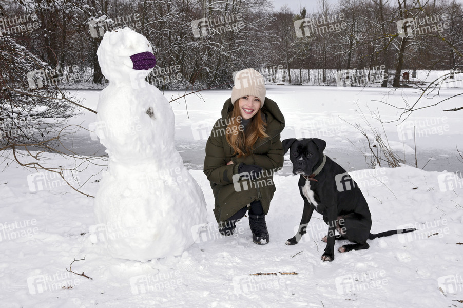 Lena Meckel mit ihrem Hund Ludwig beim Winterspaziergang im Ostpark. München, 07.01.2021