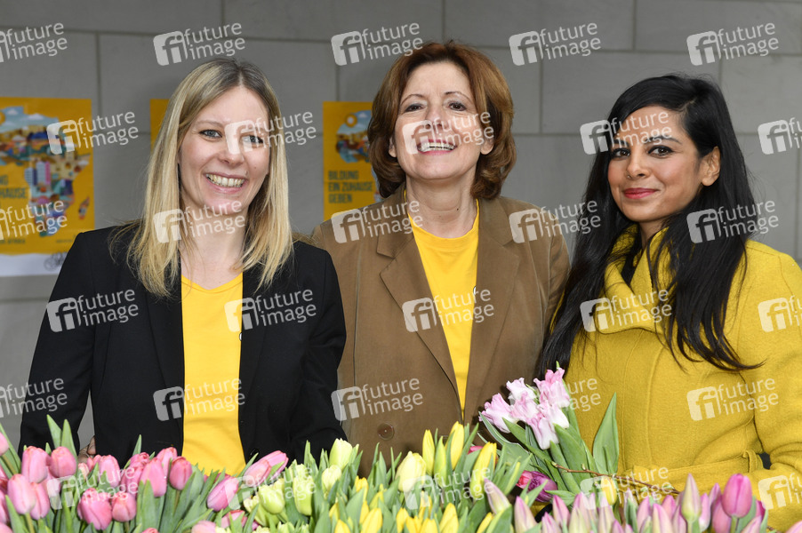 Nora Weisbrod, Malu Dreyer und Collien Ulmen-Fernandes beim Fototermin zur Aktion 'Dein Tag für Afrika' in der Vertretung des Landes Rheinland-Pfalz. Berlin, 14.02.2020