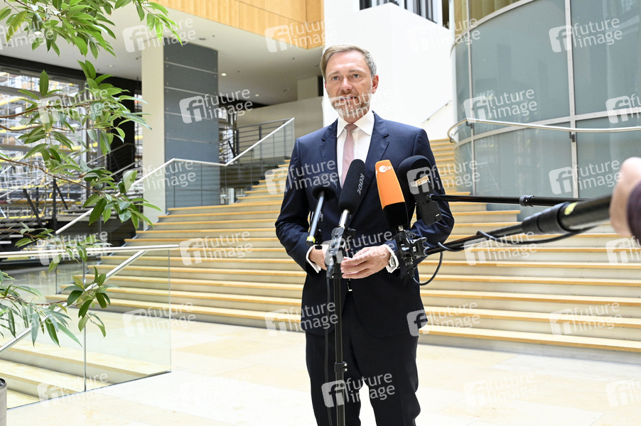 Christian Lindner beim Statement zur Ministerpräsidentenkonferenz im Jakob-Kaiser-Haus. Berlin, 10.08.2021
