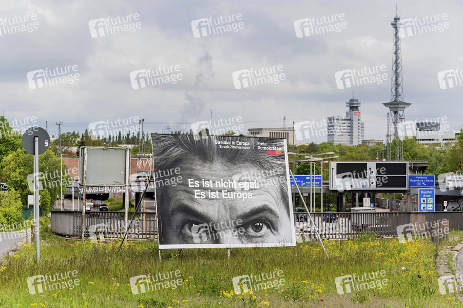 Ein Plakat der Partei FDP zur Europawahl. Vom 6. bis 9. Juni 2024 wählen die Bürgerinnen und Bürger der Europäischen Union (EU) zum zehnten Mal das Europäische Parlament. In Deutschland wird am Sonntag, 9. Juni 2024 gewählt. Berlin, 22.04.2024