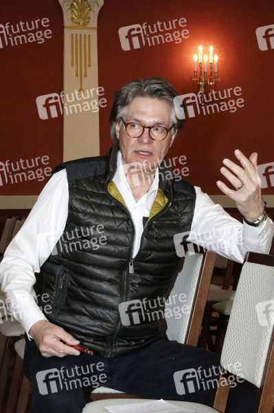 Peter Escher beim Interview anlässlich der Aufzeichnung der Fernsehsendung zum 100. Geburtstag von Herbert Köfer im Deutschen Haus. Beelitz, 15.02.2021