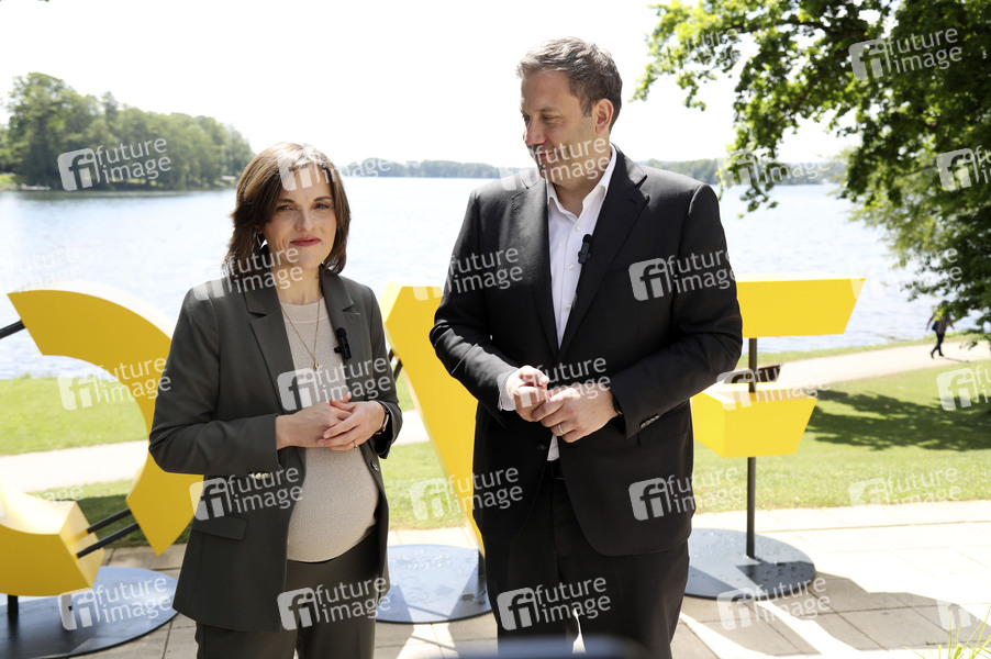 Elisabeth Kaiser und Lars Klingbeil bei der Jahreskonferenz 2025 vom Ostdeutschen Wirtschaftsforum OWF im Theater am See. Bad Saarow, 20.05.2025