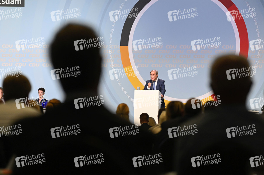 Armin Laschet beim 36. Parteitag der CDU Brandenburg in der MBS Arena. Potsdam, 04.09.2021