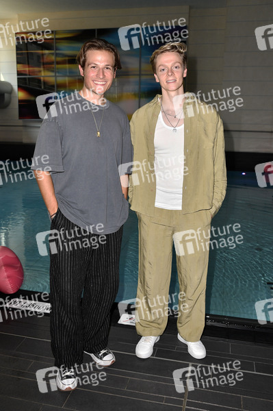 Moritz Bäckerling und Jonas Monar beim Charity Promi Swim Event 2024 zugunsten von 'Kindeswohl-Berlin' im Hotel Pullman Berlin Schweizerhof. Berlin, 04.09.2024