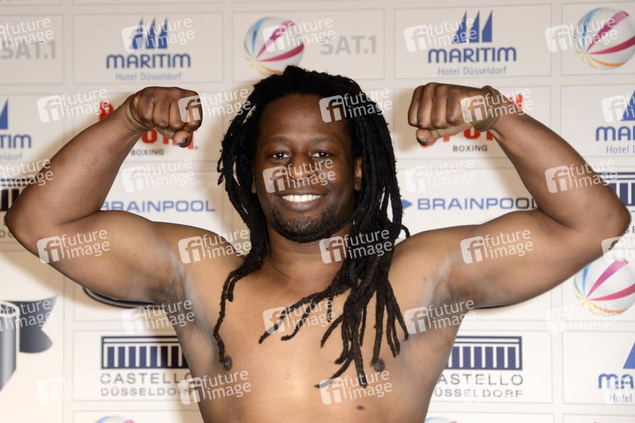 Mola Adebisi beim Wiegen zum TV-Kampfevent 'Das große SAT.1 Promiboxen' im Sportgarde Box-Club. Düsseldorf, 06.03.2013