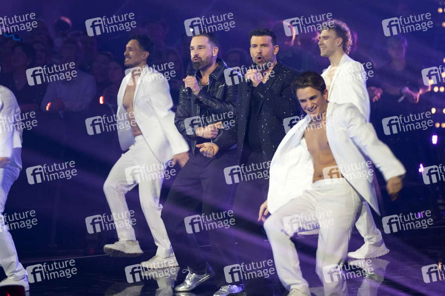Eloy de Jong und Jay Khan von Boyband Mania in der TV-Show 'Silvester-Schlagerbooom 2026 live - Die Wunderlichtershow!' im BMW Park. München, 31.12.2025