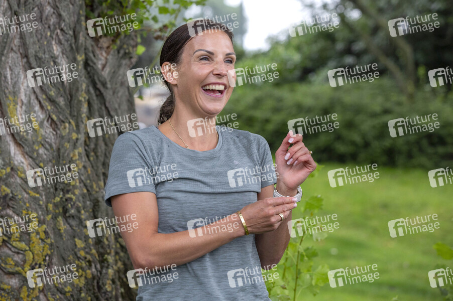 Sabrina Mockenhaupt-Gregor beim ZeroHungerRun im Rheinpark. Köln, 08.07.2021