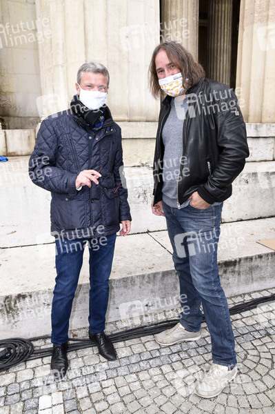 Bernd Sibler und Roland Hefter bei der Kundgebung 'Aufstehen für Kultur' auf dem Königsplatz. München, 24.10.2020