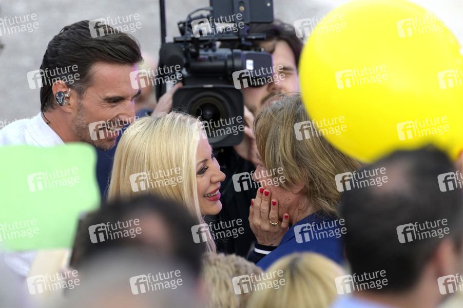 Florian Silbereisen und Jürgen Drews mit Ehefrau Ramona Drews in der TV Show 'Die große Schlagerstrandparty 2022 - Es geht wieder los!' im Amphitheater Gelsenkirchen. Gelsenkirchen, 09.07.2022