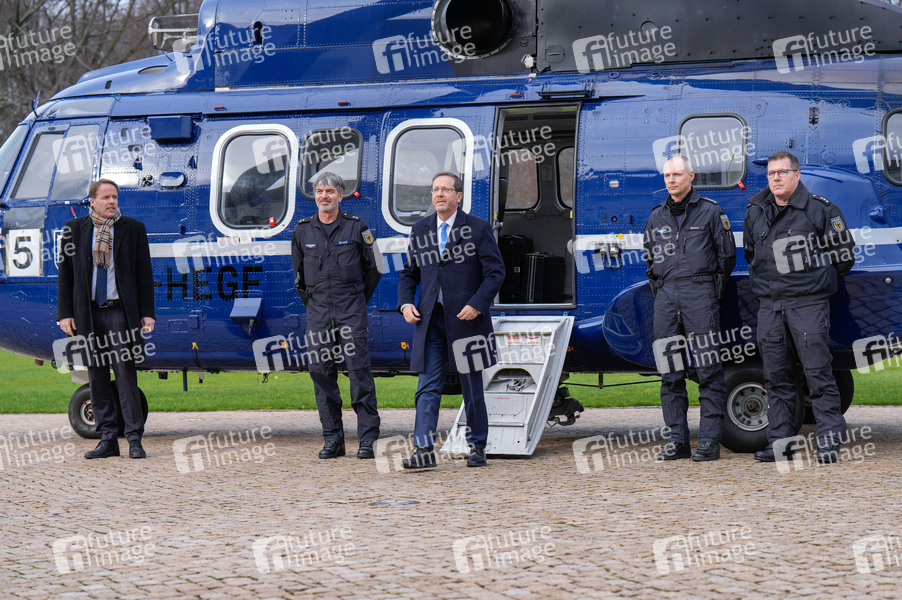 Politik, Hubschrauber, Helicopter, Staatsbesuch, Staatsvisite, Gespräch, bilaterale Gespräche, Treffen, Diplomatie, Staatsgast, Politiker, Staatspräsident von Israel, Jitzchak Herzog