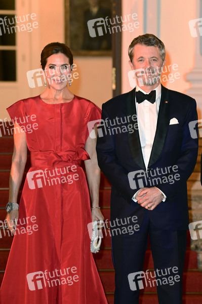 Königin Mary von Dänemark und König Frederik X. von Dänemark bei der Ankunft zum Abendessen anlässlich des 25. Jubiläums der Nordischen Botschaften im Schloss Bellevue. Berlin, 21.10.2024