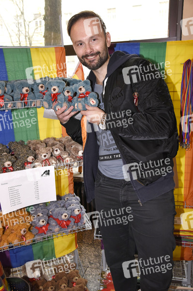 Michael Sandorov beim Teddy-Charity-Verkauf zugunsten der Münchner Aids-Hilfe e. V. im Cafe Regenbogen. München, 07.12.2020