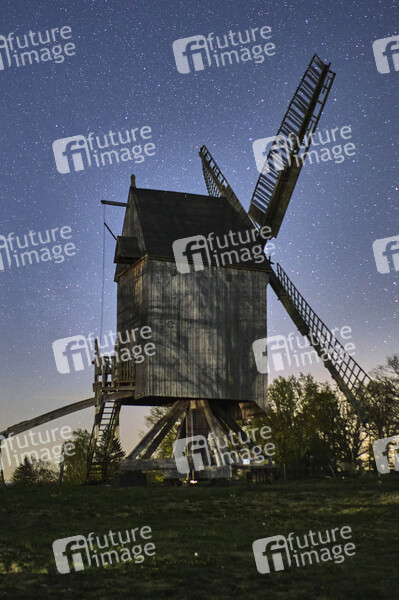 Sehenswürdigkeit, Sightseeing, Mühle, Windmühle, funktionsfähiges kulturhistorisches Denkmal, Ständermühle, Kastenmühle, Mühlenhaus, Hausbaum, technisches Bauwerk, Flügle, Windmühlenflügel, Windenergie, Energieumwandlung, Nacht, Sterne, Sternenhimmel